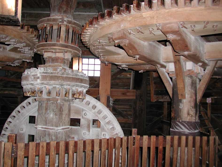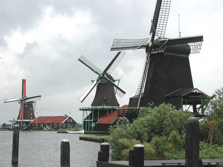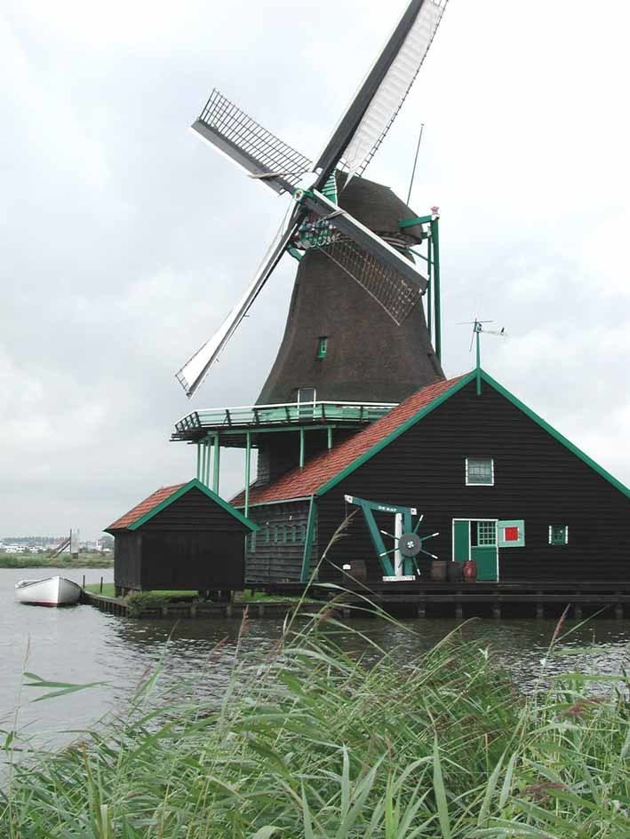8月13日朝9時30分に観光ツアー・バスに参加した。アムステルダム北方15kmにあるザーンセ・スカンス(Zaanse Schans)を訪れ風車や博物館を見学した。風車の外観を(写真1)に、その内部を(写真2)に示す。風車小屋では、マスタードやオイルを絞るが、更に製材にも使われる。ザーシ川沿いに4基の風車があるが、そのうち3基を(写真3)に示すが壮観であった。博物館は、物静かで美しい影を水面に浮かべていた。(写真4)