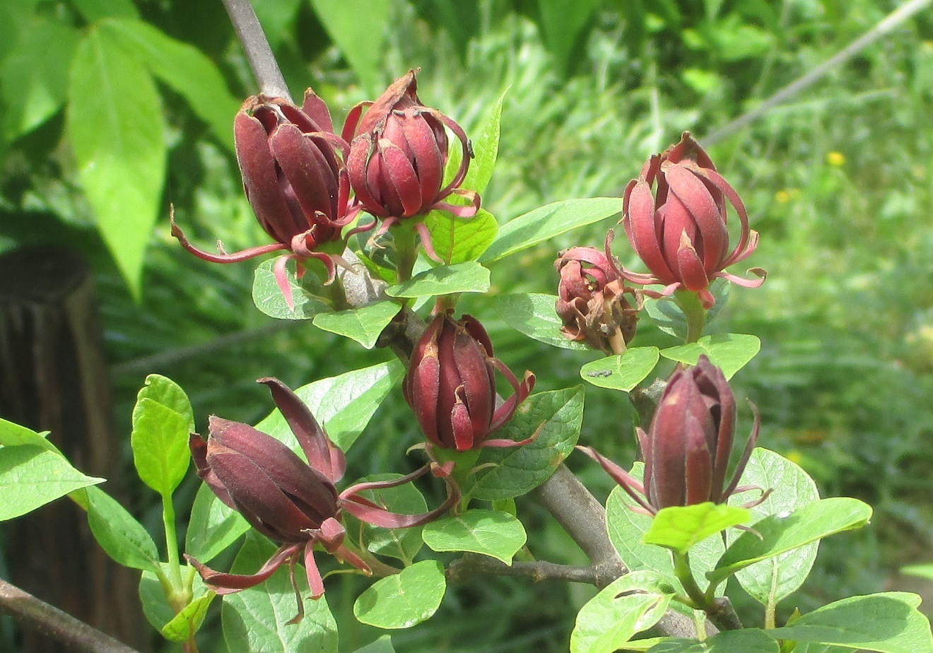 ●クロバナロウバイ(黒花蝋梅):5月15日に大船植物園フラワーセンターで撮影しました。蝋梅とはまったく異なる。北アメリカ東部が原産の落葉低木。