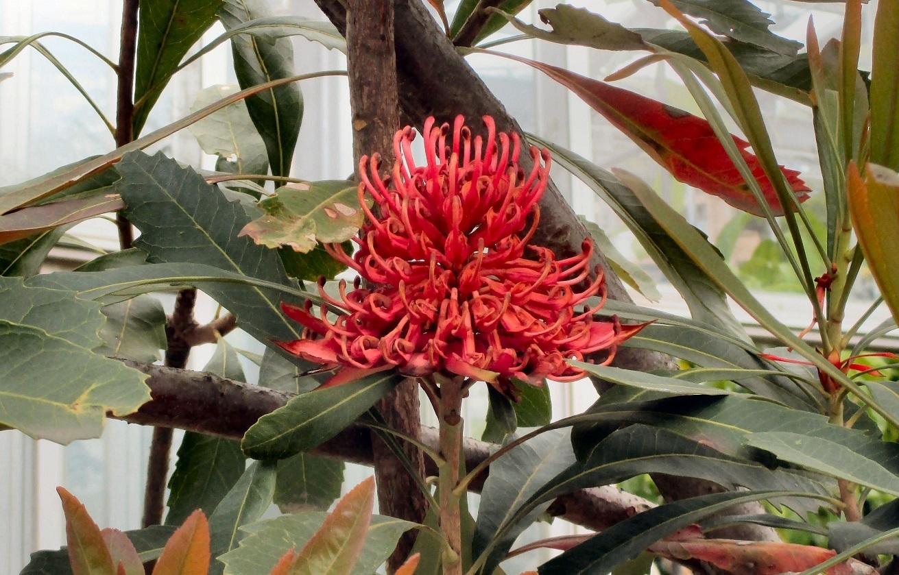 ●テロペア・スペキオシッシマ:5月15日に大船植物園フラワーセンターの温室内で撮影しました。オーストラリアの国花。オーストラリアではとてもポピュラー、(太陽の花)(ワラタ)と呼ばれ、品が良い。株立ち状になり、先端部に花がつく。