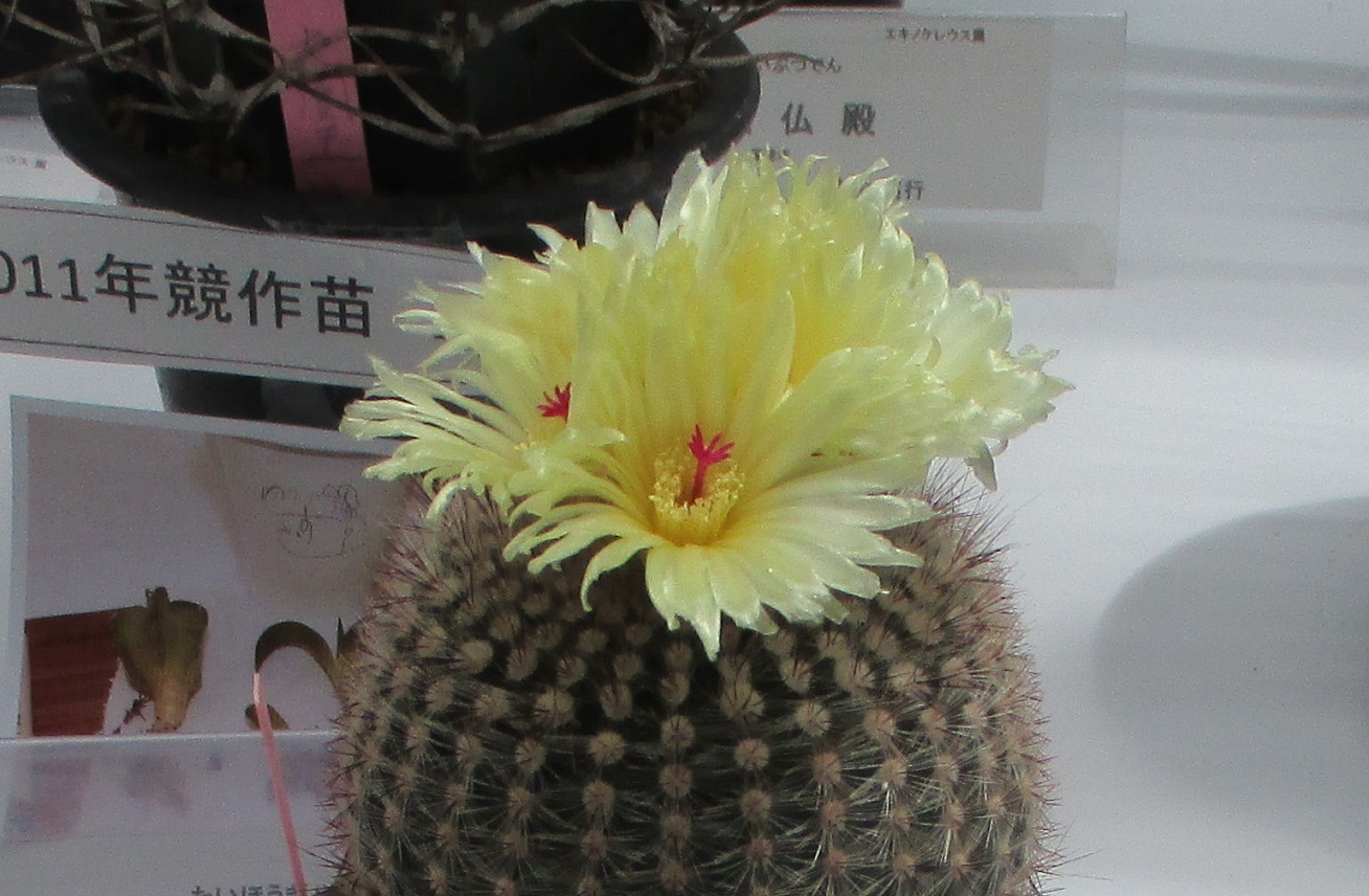 ●サボテン(紅小町)●サボテン(大統領):5月15日に大船植物園フラワーセンターの温室内で撮影しました。アメリカ、メキシコ、中米が原産。サボテンは砂漠のように、水と栄養の乏しい場所で育ちます。雨の降らない場所では、その後の雨季に向けて活動を抑え(休眠して)厳しい環境を乗り越えます。雨季になると、活動を再開し、一斉に水分を補給して生長します。このチャンスを逃すと子孫を残せないと考え、種を作るために花を咲かせます。