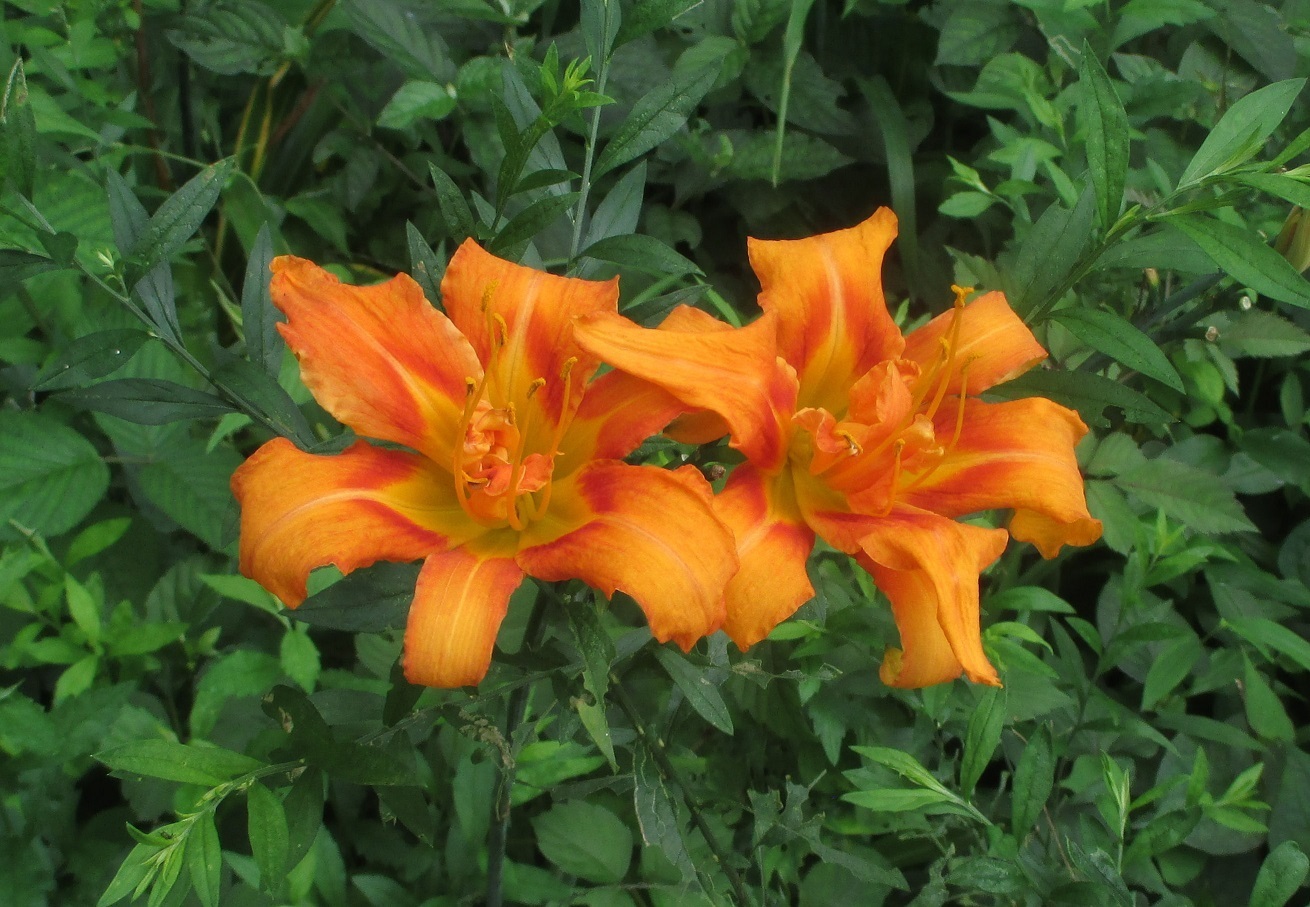 ●ヤブカンゾウ:野川公園の自然観察園で撮影しました。別名=「オニカンゾウ」。古くから中国から帰化したそうです。中国ではこの花を見ていると憂いを忘れると言われていて、別名「萱草(わすれぐさ)」とも言われる。内側の雄しべが花弁化して、八重咲きになっています。この花を着物のひもにつけておくと、嫌なことを忘れさせてくれるそうです。