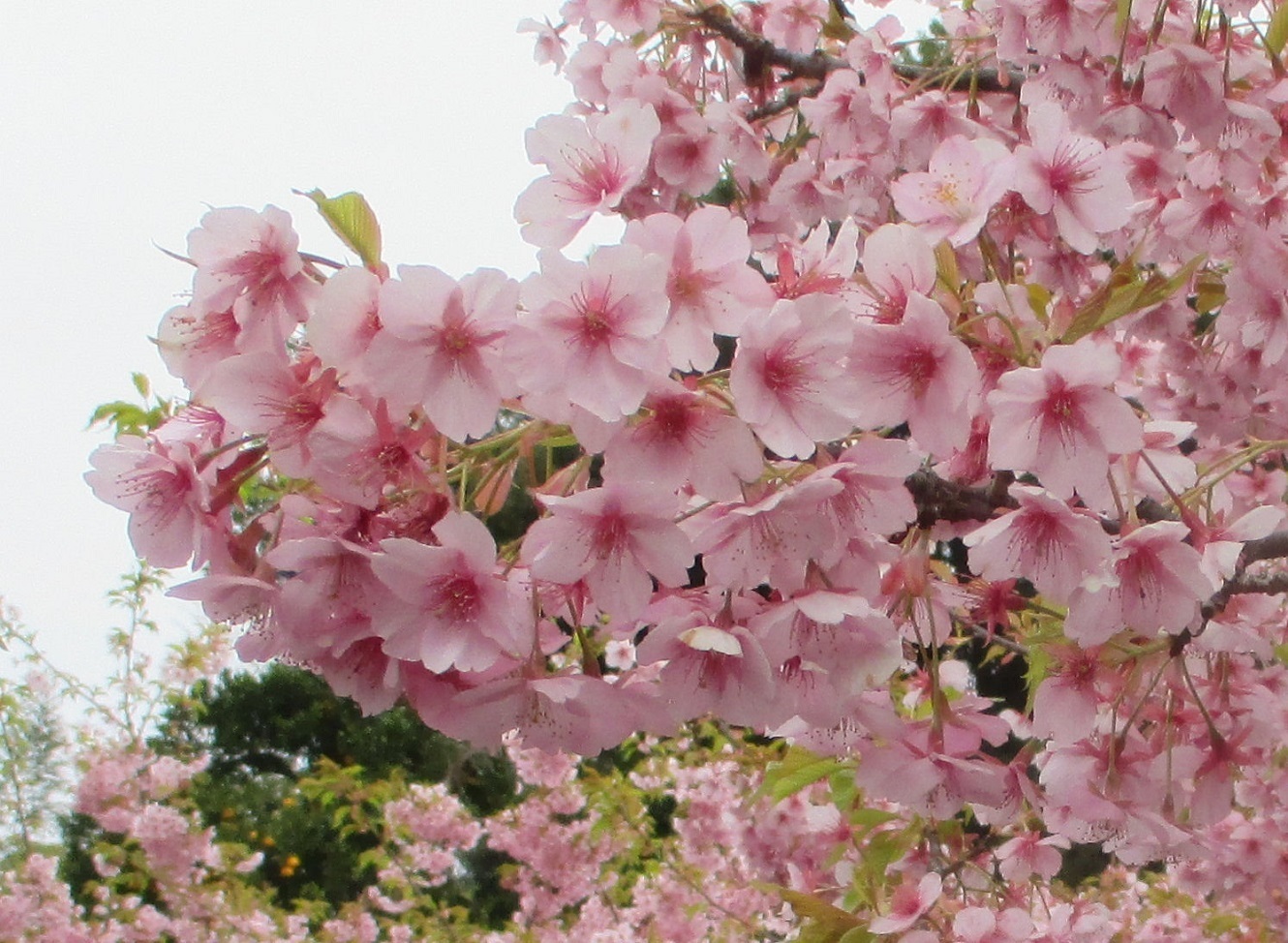 この花は、1955年に発見され、1975年に河津桜(カワヅザクラ)と命名されました。カンヒザクラ系と早咲きのオオシマザクラ系の自然交配種と言われています。河津川周辺では(2/10~3/10)に「河津桜まつり」が行われます。