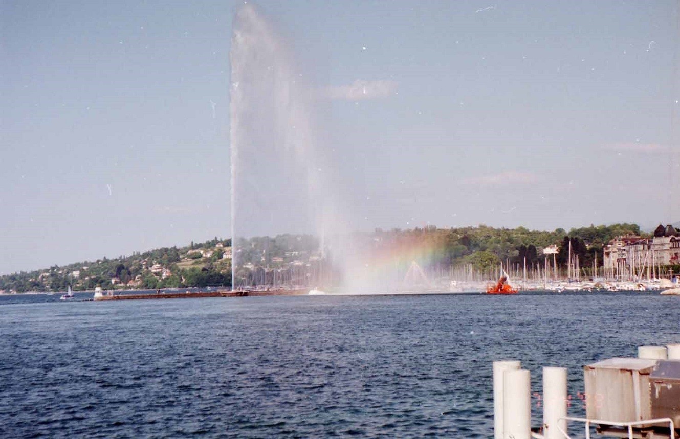 | 朝日に輝くレマン湖と湖畔の斜面に連なる葡萄畑を見ながら、至福の時を数日間楽しんだ。名優チャップリンが当地で晩年を過ごした気持ちが良く分かる。スイスは安全だが、暗くなると危ない。展示会が終わると早々にローザンヌに帰り、夕食後、私の部屋で教育が始まった。持参した珍しい写真を見せながら、私自身の発展途上国出張時の苦労話や先輩達の涙ぐましい体験の一端を紹介した。 | ||
