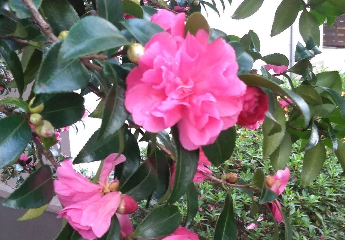 山茶花は日本が原産地。長崎の出島からヨーロッパへ伝わり、和名がそのまま学名(Camellia sasanqua)になったそうです。