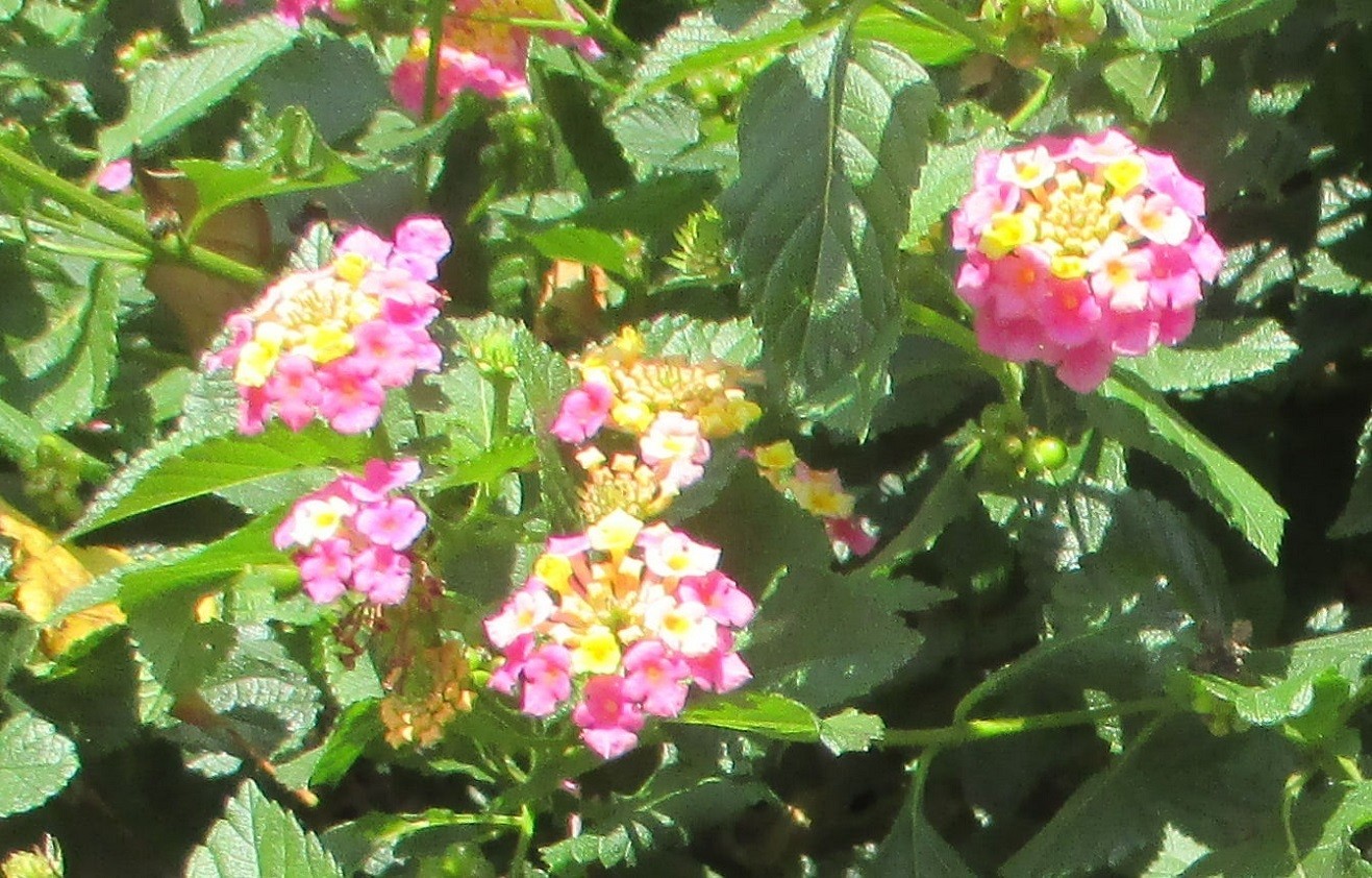 ●ランタナ:11月8日に、いつもの買い物の店の傍で撮影しました。熱帯アメリカ原産、約150種が熱帯地域に広く分布しているそうです。和名(七変化)は徐々に花の色が変化する不思議さをあらわしています。初夏から秋まで半年以上も花を長く咲かせてくれます。