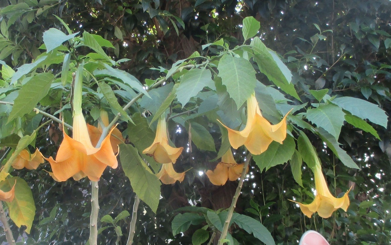 ●木立朝鮮朝顔:11月10日に、いつもの買い物の店へ行く途中で、車を降りて撮影しました。中南米、インド地方原産。江戸時代から薬用植物として利用されていた。一方毒性もあり、幻覚症状を引き起こす危険もある花でもあるそうです。