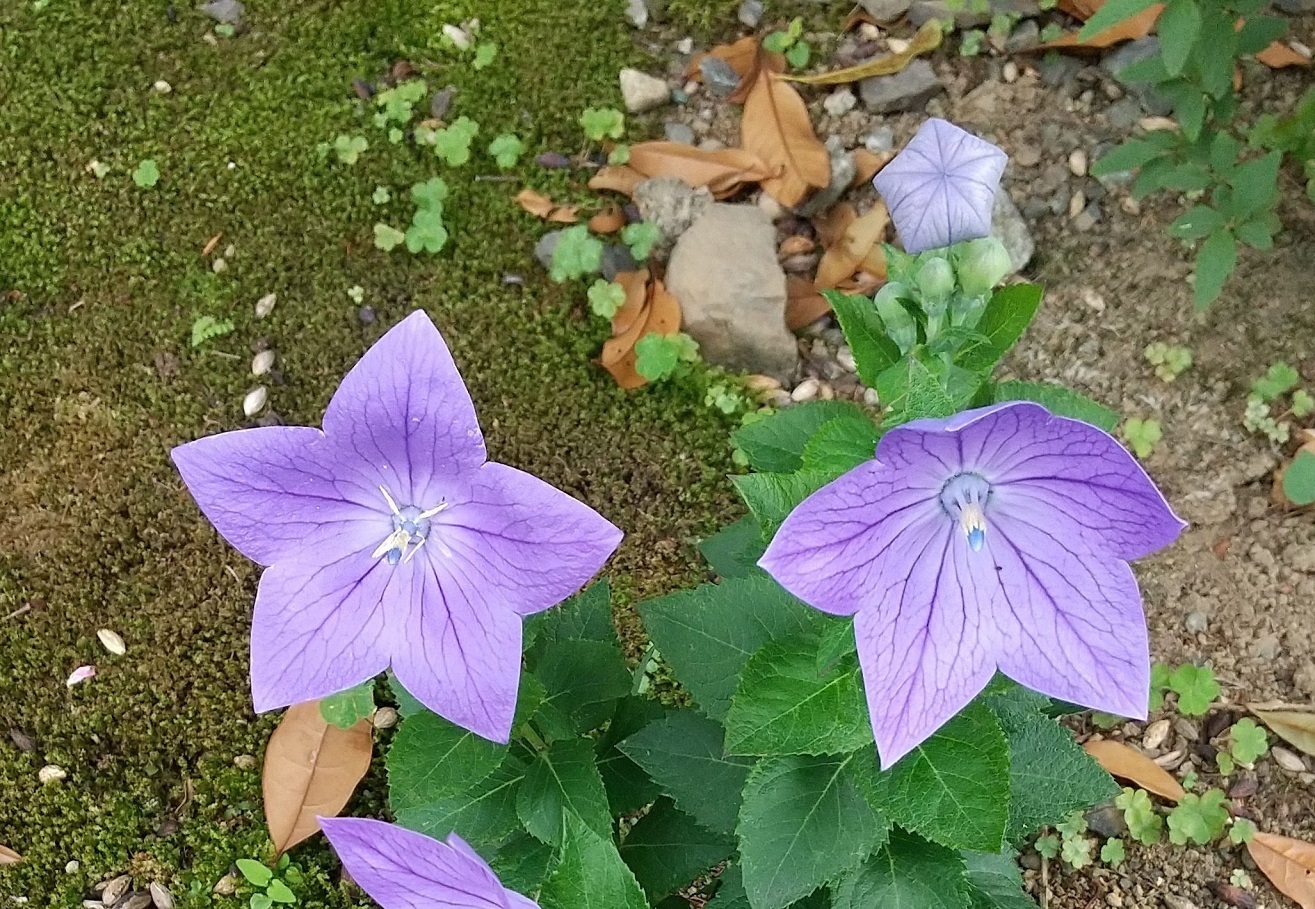 ●キキョウ(桔梗):我が家の近所で、6月14日に撮影しました。英名(Balloon Flower):写真の右上に開花する前の蕾が見えますが、膨らんだ風船のように見えることから、この英名が付けられました。