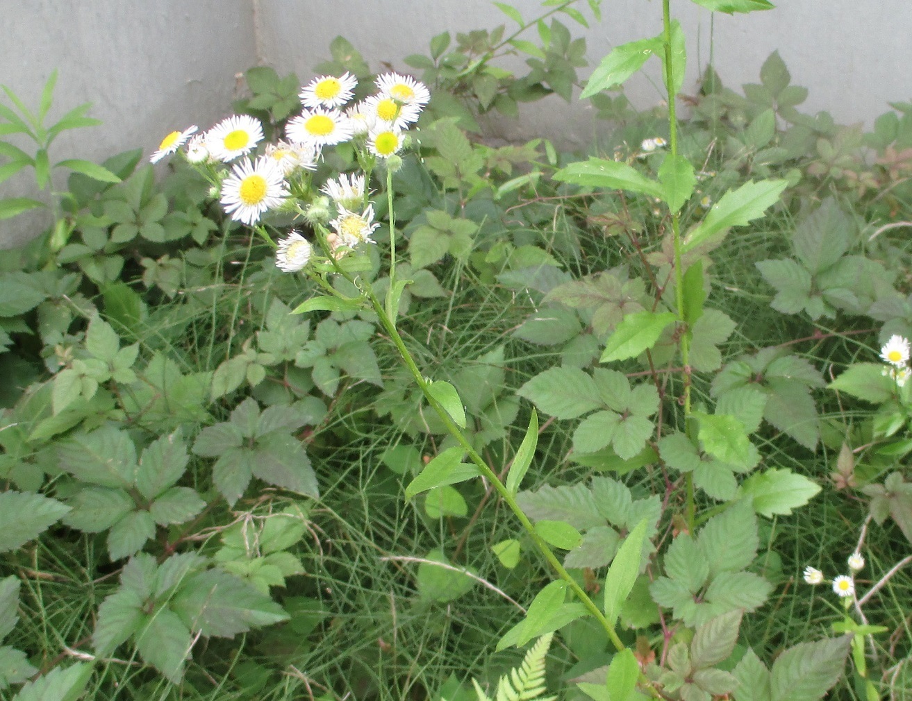 ●ヒメジョオン(姫女菀):我が家の近所で、6月24日に撮影しました。この花に似た花に「ハルジオン」がありますが、よく似た花なので見分けが付きにくいのです。以前にも書きましたが、ハルジオンは「4~6月」、ヒメジョオンは「5~8月」に咲く。ハルジオンは茎の中が空洞、ヒメジョオンは茎の中が詰まっている。ハルジオンは葉が茎を抱くように付く。ヒメジョオンの葉は茎を抱くようには付かない。そこで、今回は写真で葉の付き方が判るように撮影してみました。判りますか?。