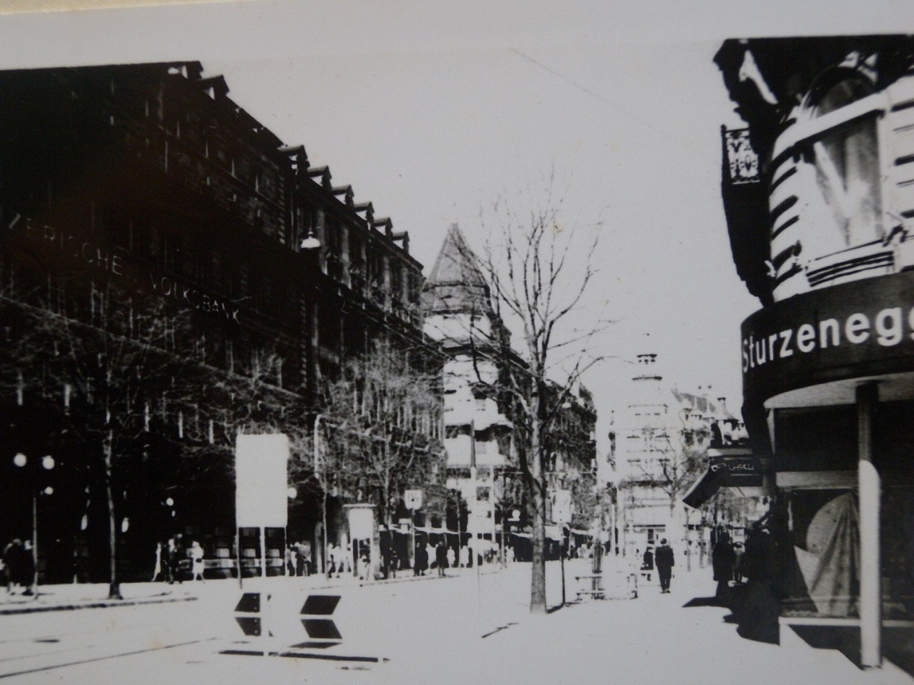 | この辺は静かな区域で、劇場に行く人たちの宿と書いてありましたが、私はそうした華やかな人たちは見ていません。恐らく出歩く時間帯の違いでしょう。一人で居る時に昼間は良くバーンホフシュトラッセへ行きました。この通りには金融機関だけでなく市民が楽しむ色んなお店もありました。(Fig.4) | ![]() |