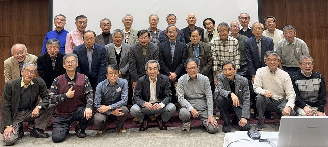 講演会の後は、熱海の温泉にゆったり浸かって皆、旅の疲れを取った。夕方6時からは、宴会場で懇親会。まず、50年会の開催を祝して町田俊明さんから乾杯の発声。引き続き、荒川泰彦さんが令和5年度文化功労者に選ばれ、更に第107回の日本学士院賞受賞されたことを皆でお祝いした。